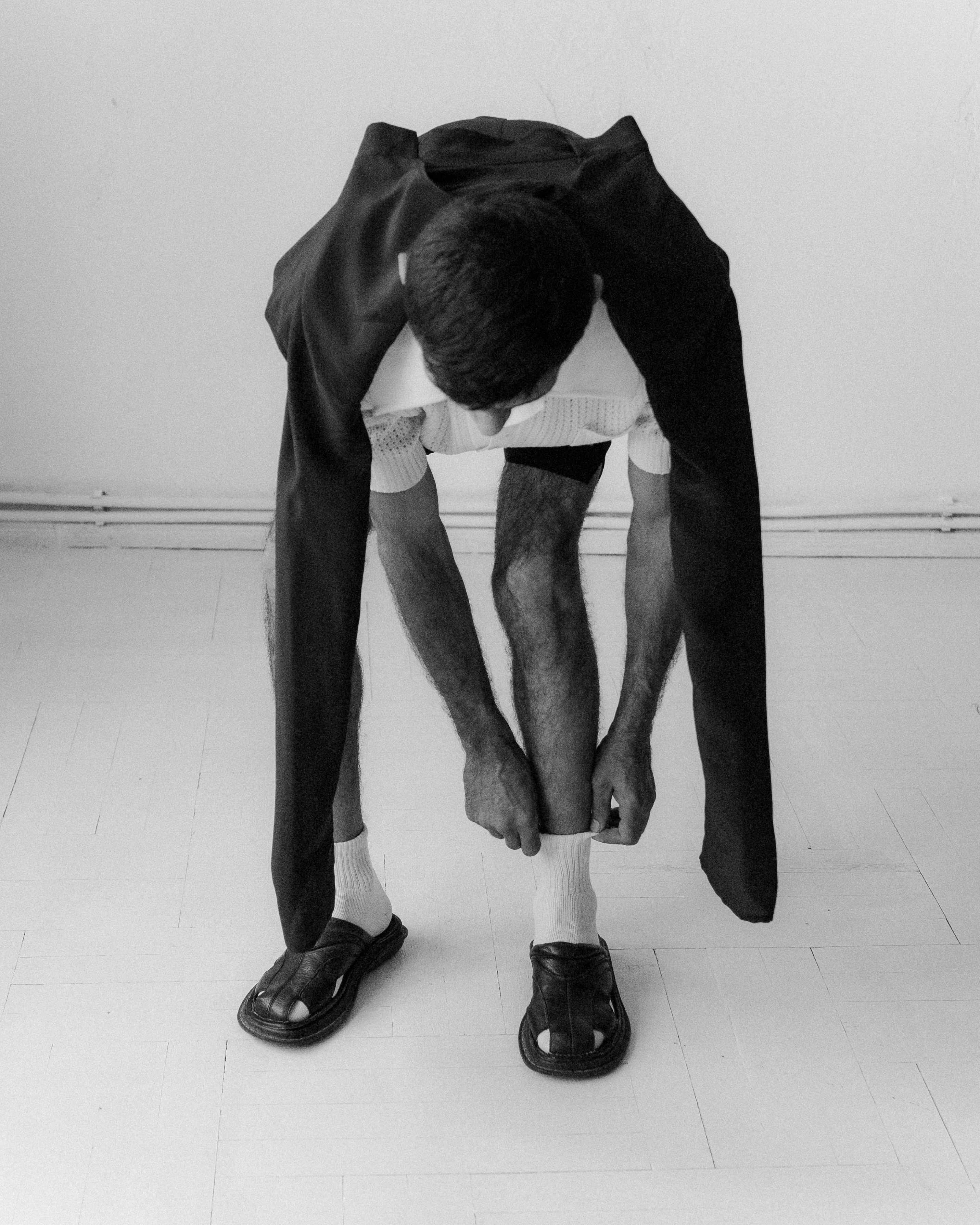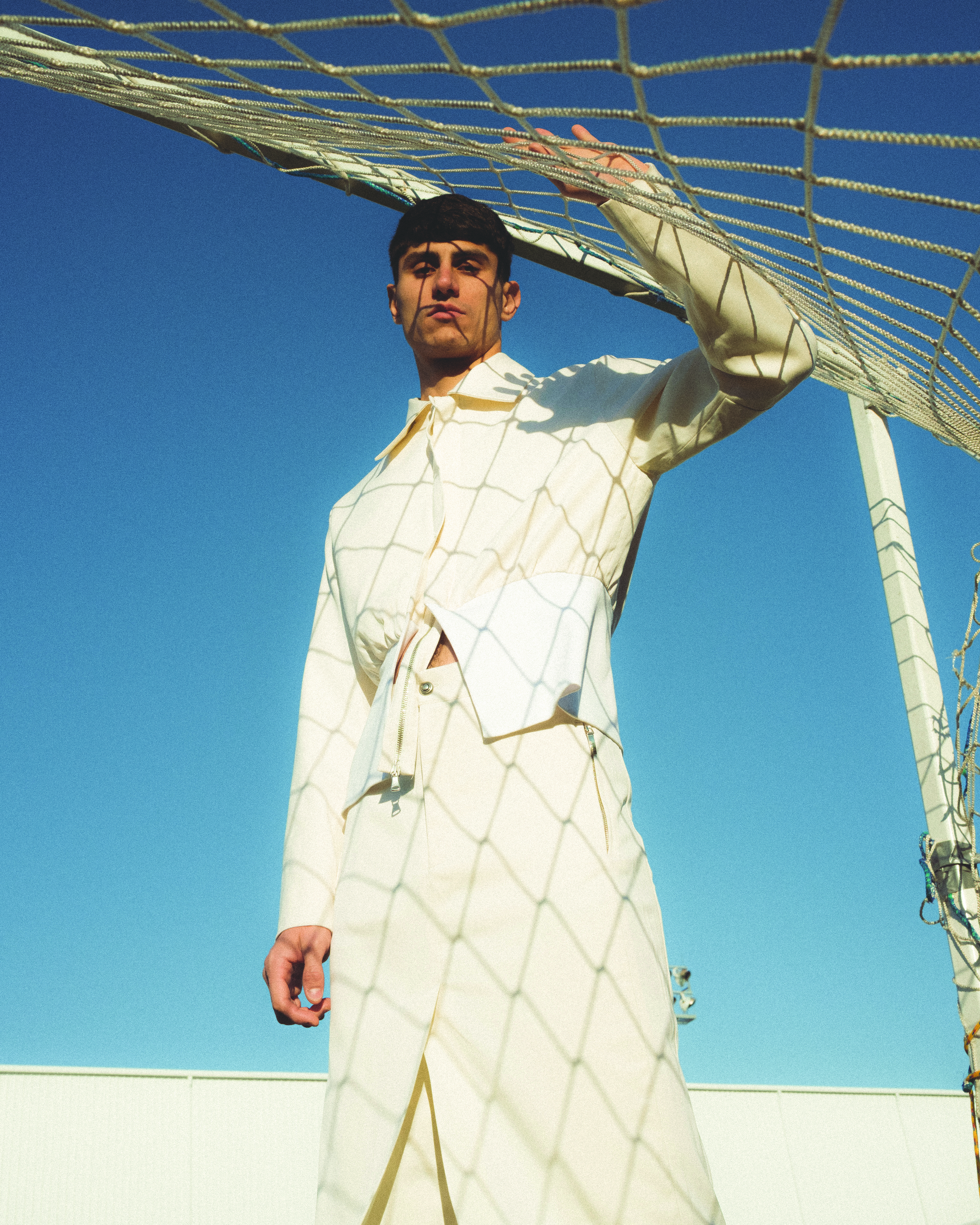 Einar is an Armenian-Azeri who was born and raised in Georgia. This photoshoot took place during Azerbaijan’s invasion of Armenia in September 2022. This is as far as Ruslan Nasir’s AW2022 called «My Old Man» can go: we’ve been encapsulating rivalrous bloodshed in a body of one here, forever.